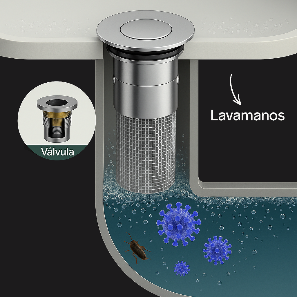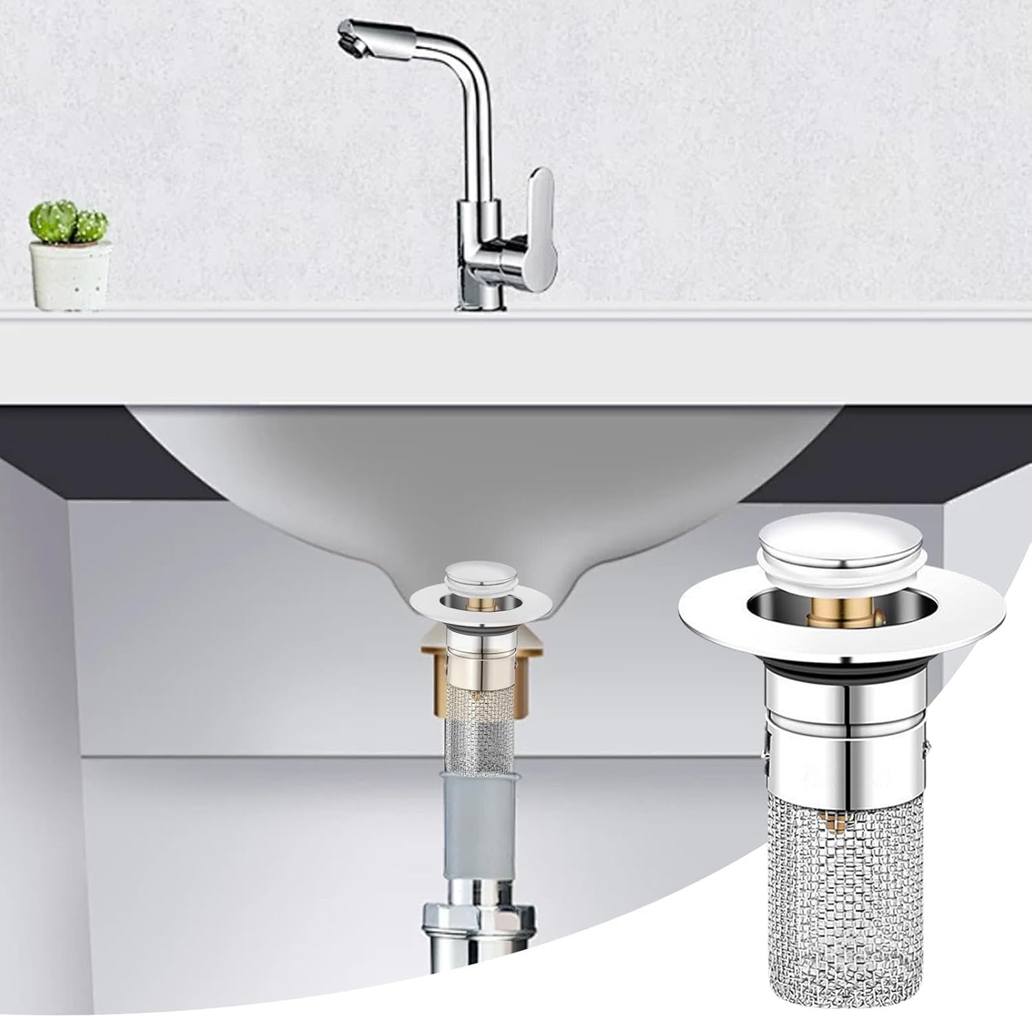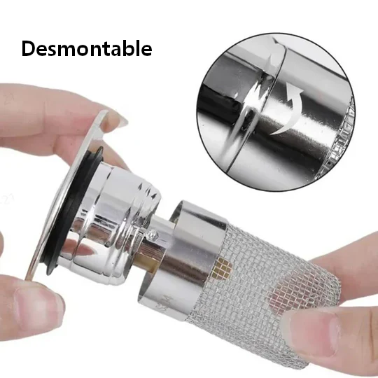 Olvídate de los tapones antiguos con cadenas incómodas. Solo presiona la parte superior para cambiar entre modo de retención de agua y modo drenaje con filtro. ¡Rápido y práctico!